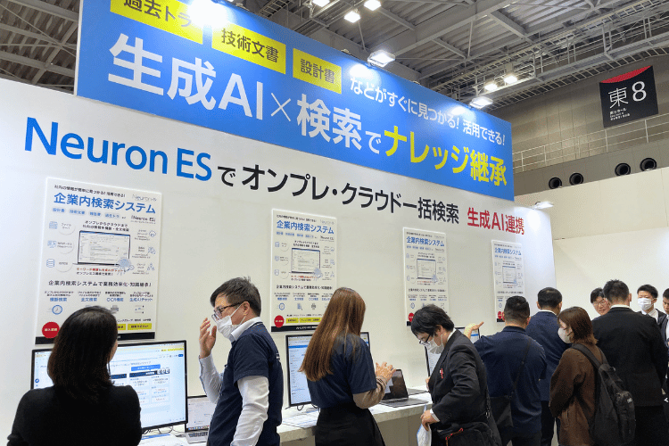 弊社ブレインズテクノロジー株式会社のブースでは、社内に点在する膨大な文書やデータから欲しい情報を素早く検索できる企業内検索システム「Neuron ES」と「生成AI連携機能」を展示いたしました。