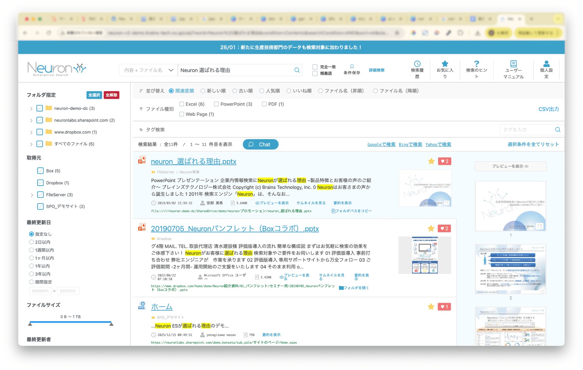 オンプレ・クラウド問わず社内に散らばった文書やデータを横断的かつ文書の中身まで検索できる「Neuron ES」