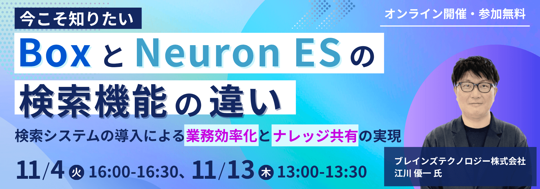 今こそ知りたい「Box」と「Neuron ES」の検索機能の違い 〜検索システムの導入による業務効率化とナレッジ共有の実現〜 |